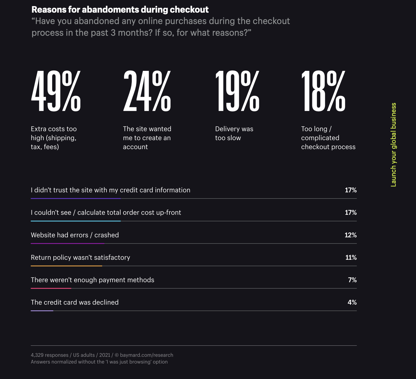 Another major thing to look at is facilitating your global customers to pay in their preferred method. It will make the purchasing process easier and may increase the likelihood of doing so.