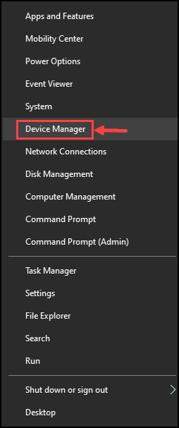 - Right-click on the Start button and select the Device Manager option