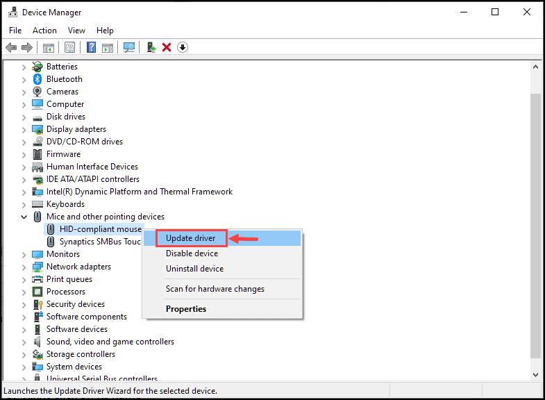 - Right-click on its name and choose Update driver.
