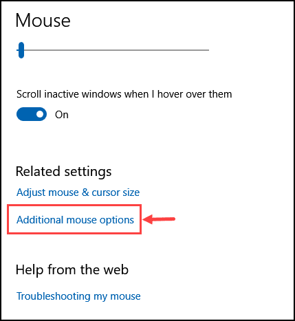 - Scroll down and click on the Additional mouse options.