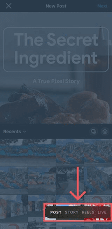To proceed to the next step, you�ll be asked to choose where you import your post from. For instance, your source could be any picture or video right from your phone’s “Library,” or you shoot a new photo by clicking on the “Photo” option. If you want to post a video, you can click on the “Video” option and upload it as you go or choose one from your mobile.