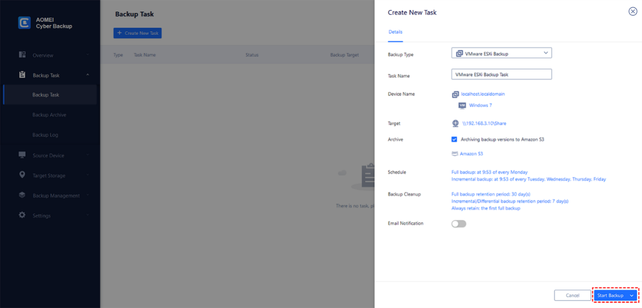 Schedule ESXi VM Backup with AOMEI Cyber Backup