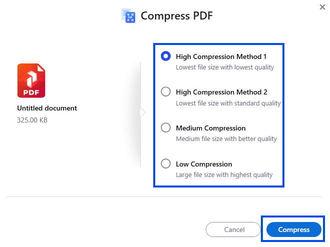 Large PDF files are most often cumbersome to email or upload. It’s worth compressing your file without losing quality for quicker sharing and storage.