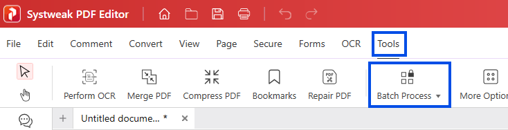 - Open the file in Systweak PDF Editor and select Batch Process from the Tools tab.