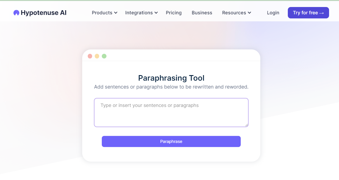 With the assistance of machine learning techniques, Hypotenuse AI is a sophisticated paraphrase tool that creates original sentences and paragraphs. It can be used to rearrange phrases, substitute synonyms for frequent terms, and alter the general tone of a work without affecting its original meaning. Content authors who wish to improve the readability of their work or steer clear of plagiarism will find the tool very helpful. It is a great option for anyone wishing to write better because it is quick, precise, and simple to use.